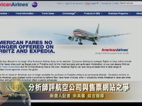 【新唐人2011年1月4日訊】新年伊始,美國兩家網上代售飛機票的旅行公司,先後不再代售美國航空公司的機票了。為甚麼這些曾經關係密切的合作夥伴起了爭執,紛爭又將如何發展呢?請看分析師的見解。