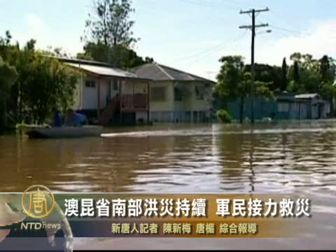 【新唐人2011年1月4日訊】澳大利亞昆士蘭省遭遇數十年來最嚴重水災,部分地區開始退水。但在昆士蘭南部地區,災情持續。 星期二,受災最嚴重的羅克漢普頓,水位仍在持續上升,澳大利亞軍方通過駁船和飛機,為災民運送物資。鄰國新西蘭也伸出援手,協助澳大利亞救災。