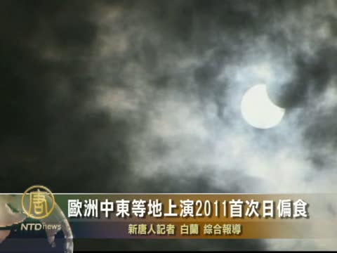 【新唐人2011年1月5日訊】1月4日,全球迎來2011年第一次日偏食,歐洲和中東大部分地區都可以看到這一天文奇觀。