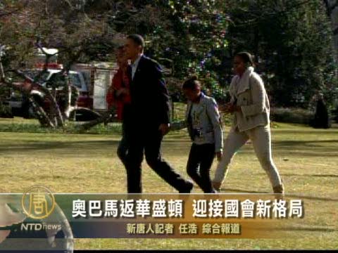 【新唐人2011年1月5日訊】星期二(1月4號),美國第一家庭結束夏威夷假期,回到華盛頓。對奥巴馬來說,這次迎接他的是一個全新的國會格局。