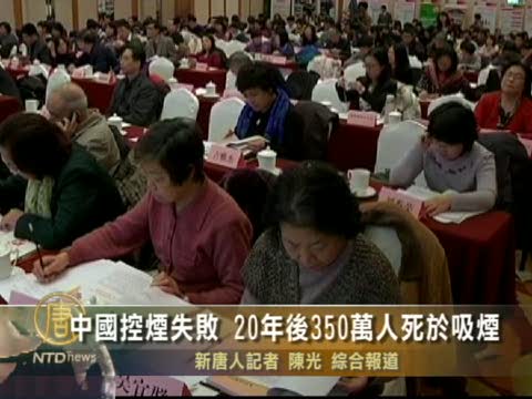【新唐人2011年1月6日訊】星期四發表的一份由60多位中外專家組撰寫的報告稱,中國未能兌現向世界衛生組織做出的加強煙草控制的承諾,北京當局必須推出一個在公共場所吸煙的禁令,以避免出現一個國家性的健康災難。 報告預測,20年之後,中國每年將有多達350萬人死於吸煙方面的疾病。