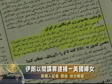 【新唐人2011年1月7日訊】週四(1月6日),伊朗報紙報導,一位美國婦女非法進入伊朗國土後,因被懷疑是間諜而被逮捕。