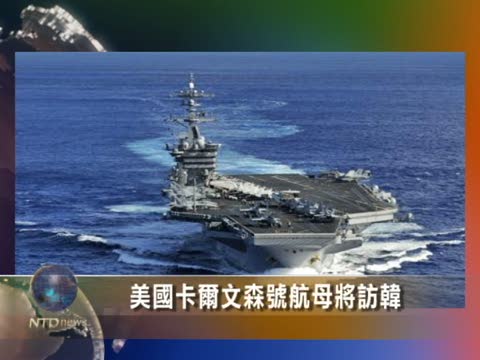 【新唐人2011年1月9日訊】美國海軍星期五(1月7號)宣佈,以卡爾·文森號航母(USS Carl Vinson, CVN 70)為首的美國一號航母戰鬥群將於下週二(1月11號)到韓國釜山(Busan)訪問。同時,兩艘導彈驅逐艦也將於同一天抵達韓國東南港口城市鎮海(Chinhae)訪問。美國海軍十分重視在亞太地區的部署。