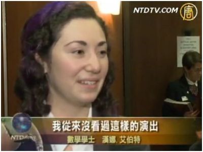 提倡環保意識的退休軟件工程師唐娜對神韻的舞蹈、音樂、故事情節各方面,有自己很深的感動。