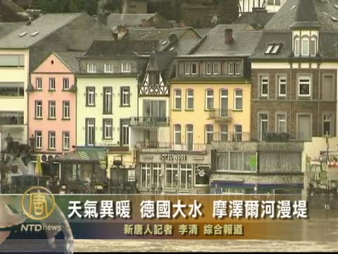 【新唐人2011年1月10日訊】德國西部城鎮科赫姆的人們星期天一早醒來,發現街道和房屋已經浸在了水中。大雨和溫暖天氣造成的積雪消融引發了這場洪災。
