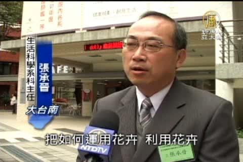 【新唐人亞太台2011年1月10日訊】花卉除了能表達心意,更能廣泛的運用在日常生活中。台南應用科技大學生活服務產業系舉辦「花卉植栽設計與創意生活美學研討會」,帶領民眾透過自然花卉,領略新生活美學。