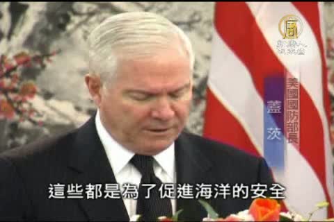 美國國防部長 蓋茨:「這些都是為了促進海洋的安全,面對在核武、太空、電腦以及飛彈方面的挑戰,促成南北韓之間達成協定,確保朝鮮半島的和平安全和無核化。」