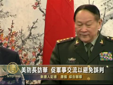 【新唐人2011年1月10日訊】在中美軍方交流中斷一年之後,美國國防部長蓋茨星期一(1月10日)在北京與中共防長梁光烈會面,蓋茨敦促中美加強軍事交流,以避免因政治摩擦,升高兩軍誤會與誤判的風險。