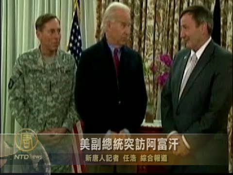 【新唐人2011年1月11日訊】星期一(1月10號),美國副總統拜登突訪阿富汗,評估美軍向阿富汗軍隊移交安全責任的進展情況,為美軍7月份開始撤軍做準備。
