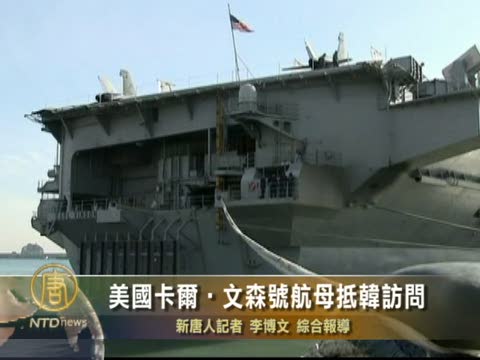 【新唐人2011年1月11日訊】美國卡爾-文森(Carl Vinson)號航母戰鬥群,星期二(1月11日)上午抵達韓國訪問。