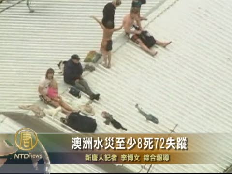 【新唐人2011年1月11日訊】澳大利亞東北部的昆士蘭州日前遭遇暴雨襲擊,許多城市被洪水圍困,房屋和汽車被淹,到目前為止至少造成8人死亡,72人失蹤。