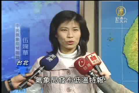 【新唐人亞太台2011年1月11日訊】新聞一開始,帶您關心,強烈大陸冷氣團持續發威,11日全台最低溫出現在淡水,只有9度,中央氣象局也持續發布低溫及大雨特報,從11日傍晚到12日清晨,冷氣團將會增強為寒流,嘉義以北地區低溫將會低於10度。