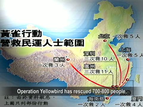 據了解,黃雀行動最初稱作「秘密通道」,從1989年6月開始。大規模的營救活動集中在89年的下半年,不過,零星的營救活動一直到1997年香港主權回歸前才告一段落。