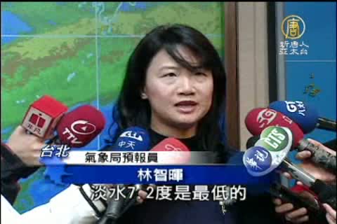 【新唐人亞太台2011年1月12日訊】新聞一開始,帶您關心,這波寒流,果然威力驚人,台南以北12日白天都籠罩在10度以下的低溫,清晨最低溫出現在台北淡水,只有7.2度低溫,台北市也只有8.4度,好消息是,14日天氣會稍微好轉一些,但週末又有一波鋒面將報到,到時北部和東北部又將轉為溼冷。
