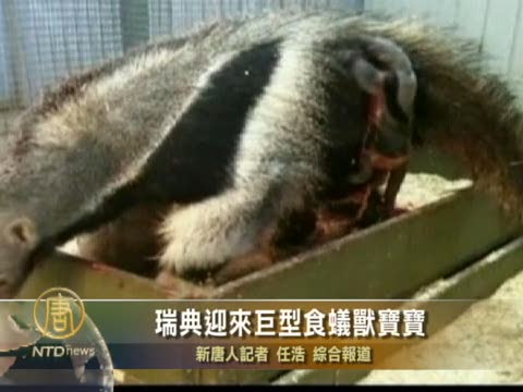 【新唐人2011年1月13日訊】新的一年,一片冰雪世界的瑞典,迎來了有記錄以來的第一只巨型食蟻獸(giant anteater)寶寶。小家夥剛出來,就已經可以在媽媽身上爬來爬去了。