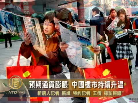 【新唐人2011年1月14日訊】去年中國土地出讓成交總價款創新高,高達2.7萬億元,新年前10天,北京住宅成交量同比增幅為75.8%。北京大學房地產金融研究中心主任馮科認為,中國未來通貨膨脹的預期比較高,在投資管道不多的情況下,購買房地產保值。