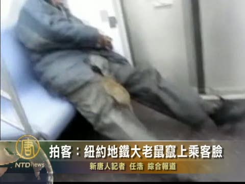 【新唐人2011年1月15日訊】很多城市的地鐵裡,都有老鼠。但是一個大個頭的老鼠鑽進紐約4號線的地鐵車輛裡,而且竄到了一個乘客的臉上,這種事情恐怕並不多見。而恰巧當時,紐約客傑夫•福德(Jeff Forde)拍下了這段畫面。