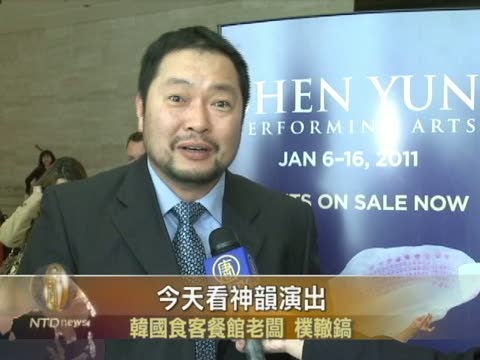 韓國食客餐館老闆樸轍鎬﹕“今天看神韻演出,我自己是大飽眼福,心裡充滿感激。非常非常好看。用英文講就是一個字,Fantastic (美妙絕倫)。謝謝。”