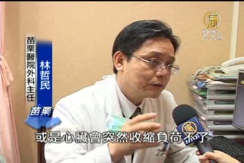 苗栗醫院外科主任 林哲民:「尤其是有心臟病高血壓,這個有時候泡湯一下子血壓突然升高,或是心臟會突然收縮負荷不了,會造成心臟病發或中風。」