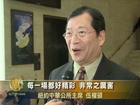 第一次來看神韻的紐約中華公所主席伍權碩還表示,希望沒有看過演出的華人能感受到他的喜悅,都來看神韻。