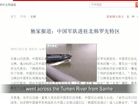 根據《朝鮮日報》報導,引述消息人士的描述,去年12月15號深夜,50多輛中共裝甲車和戰車從中國三合度過圖門江(韓國稱豆滿江),進入朝鮮會寧。