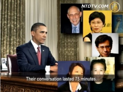 也在同一天,奥巴馬在白宮跟5位致力於中國公民權益與人權事業的學者和活動人士舉行了會晤。這五人是哥倫比亞大學的黎安友(Andrew Nathan)、中國作家查建英、耶魯大學中國法律中心創始人葛維寶(Paul Gewirtz)、美籍華人作家包柏漪,以及流亡美國的中國籍人權活動家李曉蓉。