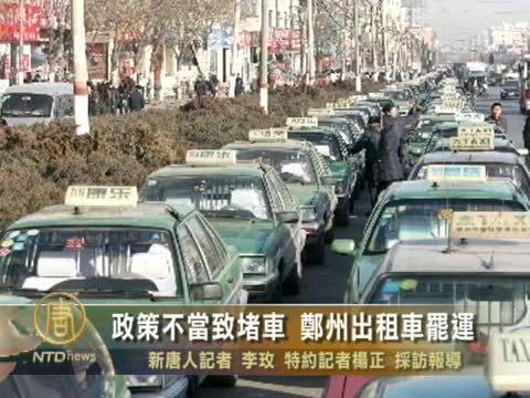 【新唐人2011年1月18日訊】中國河南鄭州政府自今年元旦起取消出租車“運六歇一”制度後,每天多出2000多輛營運,導致堵車,直接影響行業的收入,引起10日半數出租車罷運,公安局出動了4000名警察監督出車,出租車司機表示,