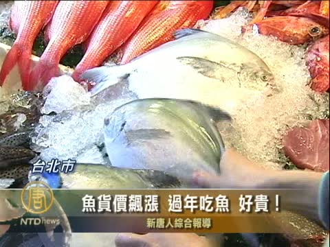 【新唐人2011年1月21日訊】過年剩下不到兩個星期,民眾拜拜最愛用白鯧魚和黃魚分別已經漲了2成和1成,就算只是買一條冷凍的中型白鯧魚,也要用掉一張千元大鈔,而且業者說,除了預期心理導致價格急漲外,今年魚貨大缺,加上中國搶貨,預估年前魚貨價格會比去年還要貴。