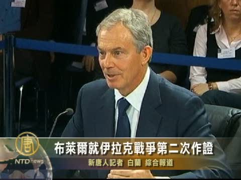 【新唐人2011年1月22日訊】時隔一年後,英國前首相布萊爾星期五(1月21日)在伊拉克戰爭調查委員會再次接受詢問。他表示他在美國對伊拉克作戰一年以前就向當時的美國總統布希作出承諾,支持美國採取行動推翻薩達姆政權。