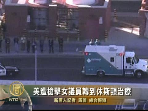 【新唐人2011年1月22日訊】在亞利桑那州槍擊案中受重傷的美國女眾議員布裡埃爾•吉福茲,21日從亞利桑那圖森市醫院轉到休斯敦一家康復中心,開始進一步的治療。