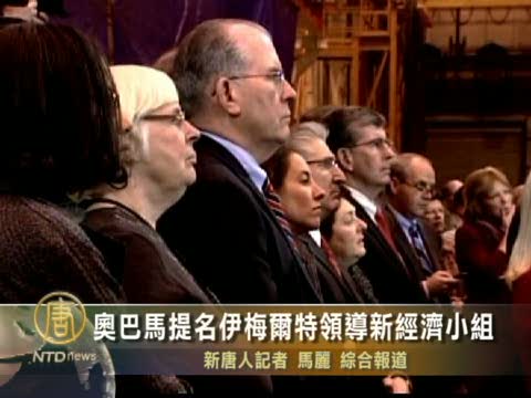 【新唐人2011年1月22日訊】週五(1月21日),美國總統奧巴馬提名通用電氣公司首席執行官(CEO)傑夫•伊梅爾特(Jeffrey Immelt)擔任白宮“就業和競爭力的總統顧問委員會”主席,有分析說,這是一個信號,預示著白宮試圖改善同商界的關係,其經濟工作的重心已從“保復甦”轉向“促就業”。