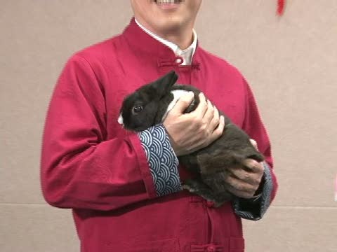 為了拍攝兔年賀詞,臺北市長郝龍斌也應景的派出小黑兔,只見兔兔睜大雙眼,乖乖的在郝市長的懷中。
