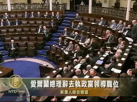 【新唐人2011年1月23日訊】星期六(1月22日),愛爾蘭總理考恩宣佈辭去執政黨領袖一職。不過在3月11日舉行大選前,他將繼續擔任愛爾蘭總理。