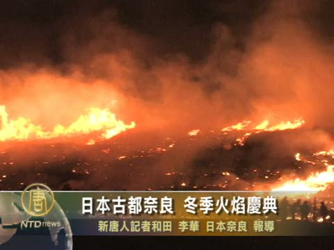 【新唐人2011年1月23日訊】延續了100年的日本古都奈良的新年火炎慶典,22號在奈良若草山上舉行。33公頃山體表面的草地被點燃,這個被稱為若草山燒山的儀式,吸引了18萬人的遊客前來觀賞。