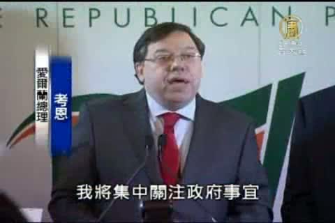 【新唐人亞太台2011年1月23日訊】星期六,愛爾蘭總理考恩宣佈辭去執政黨領袖一職。不過在3月11日舉行大選之前,他將繼續擔任愛爾蘭總理。