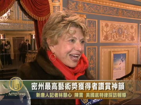 【新唐人2011年1月23日訊】1月21日晚,美國神韻巡迴藝術團在底特律歌劇院的第二場演出結束後,曾榮獲密西根州最高藝術獎的現任密西根州藝術顧問巴巴拉‧可拉奇曼女士,高度讚揚神韻藝術團表演的中國古典舞、中西合璧的現場音樂伴奏以及絢麗高雅的服飾。