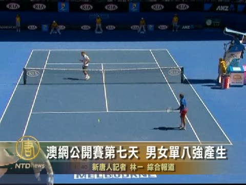 【新唐人2011年1月24日訊】1月23號,澳洲網球公開賽進入第七日的比賽, 男子和女子單打分別進入八強。男子比賽中瓦林卡,費德勒和德約科維奇分別擊敗羅迪克,羅佈雷多和阿爾瑪格羅晉級。女子比賽中佩特科維奇,斯齊亞沃尼和沃茲尼亞奇分別擊敗莎拉波娃,庫茲涅佐娃和塞娃斯圖娃。