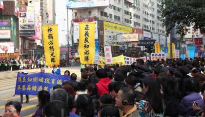 今次集會遊行的主題是揚正義、盼神韻,希望各界共同排除中共干擾,恭候神韻光臨香港。