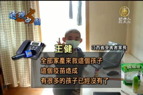 【新唐人亞太台2011年1月24日訊】來看到中國新聞真相報導。去年中國新流感大爆發,很多注射新流感疫苗的孩子發生不良反應,致死、致殘的案例不斷傳出,來自江西和山東的兩位受害者家長,去年帶著孩子到北京求醫和上訪,高昂的醫療費早就已經讓他們傾家蕩產,不過,相關政府部門至今沒有任何回應。