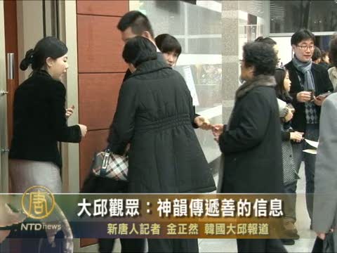 【新唐人2011年1月24日訊】:韓國各界主流社會人士,觀看了美國神韻國際藝術團在大邱22日的演出後,表示演出讓他們大開眼界,並不惜讚美之辭。請看來自大邱的報導。