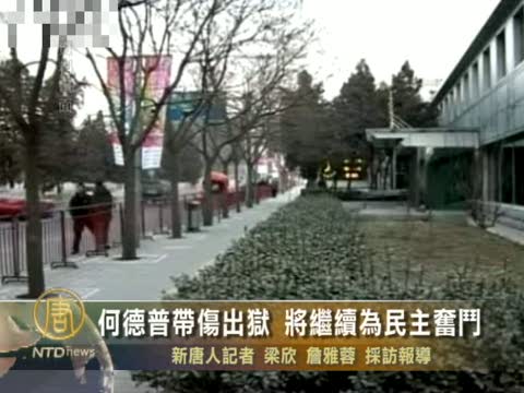 【新唐人2011年1月25日訊】被判刑8年的民主黨京津黨部負責人何德普24號期滿出獄,他因為不願意坐警車回家被幾名警察打傷。他的朋友被以暴力威脅阻止進何家。何德普表示,為了實現自由中國的夢想,將一如既往、去吶喊、去奮鬥。