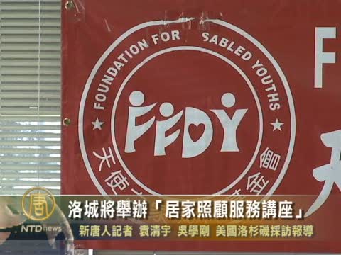 【新唐人2011年1月26日訊】居家照顧服務(IHSS)是加州政府提供給發育障礙人士的一項福利,由州政府資付給親屬或看護來照料其生活起居。由於州政府刪減預算,從今年2月1日起居家照顧服務小時將被削減3.6%至8.6%,天使之家殘障基金會鑒於此,將於1月29日在洛僑中心舉辦「居家照顧服務(IHSS)講座」。請看美國洛杉磯報導