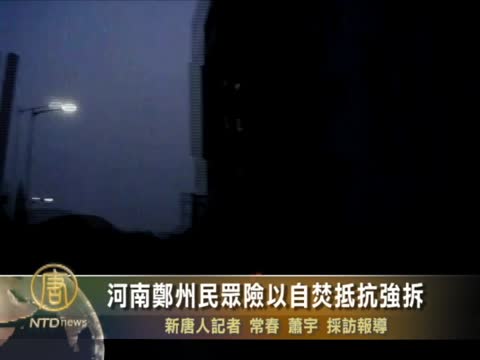 【新唐人2011年1月27日訊】中國河南省鄭州市,近日發生一家四口人在身上澆汽油,打算以自焚抵抗強拆事件,還好最後拆遷隊被迫撤退,才沒有釀成悲劇。