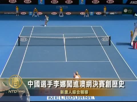 【新唐人2011年1月27日訊】1月27日,在澳洲網球公開賽的第一場半決賽中,排名第11的中國選手李娜 以3-6,7-5和6-3擊敗頭號種子選手沃茲尼亞奇,挺進決賽,成為首位打入網球大滿貫決賽的亞洲選手。