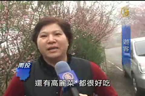 【新唐人亞太台2011年1月27日訊】南投草坪頭玉山觀光茶園,海拔1200公尺,是一處面積寬廣、景致優美的觀光茶區。為了提升茶園觀光價值,在茶區內遍植八重櫻千顆,滿山的粉紅櫻瓣顯得繽紛浪漫。