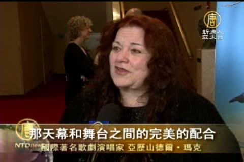 【新唐人亞太台2011年1月27日訊】來關心神韻藝術團的演出情形。曾被華盛頓郵報形容有著世界上最美妙聲音的國際著名歌劇演唱家亞歷山德爾‧瑪克,他觀賞了今年美國神韻紐約藝術團在美國華府的演出,亞歷山德爾讚嘆神韻世界級的演出,讓她感到驚喜萬分。