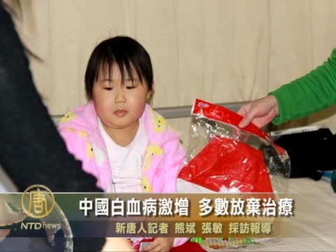 【新唐人2011年1月29日訊】據統計,中國每年新增約4萬名白血病患者,因為醫藥費昂貴大都放棄治療。大陸醫生表示,食物以及環境污染還有打吊針都是造成白血病的誘因。