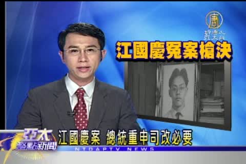 【新唐人亞太台2011年1月29日訊】好,那麼針對江國慶的冤案,總統府今天也做出回應。發言人羅智強今天表示,馬英九總統非常關心且重視;總統認為,江國慶蒙受的冤屈,顯示政府須堅持改革,讓司法做到勿枉勿縱,不容類似冤案再次發生。