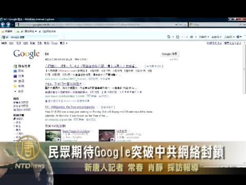【新唐人2011年1月30日訊】最近有中國網友表示,能拜訪Google香港網頁,而且不需要翻牆軟件就可以搜索到一些像六四這樣原來被當局屏閉的敏感圖片及詞﹔本臺記者在大陸網友的協助下實際做了測試,發現各地的情況不盡相同。