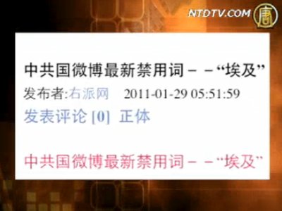在新浪等多家微博網站,「埃及」已被列為敏感詞,無法檢索搜尋。曾在北京外交部工作的網絡作家楊恆均,在新浪微博上發表埃及事件感言,但隨即遭到刪除。